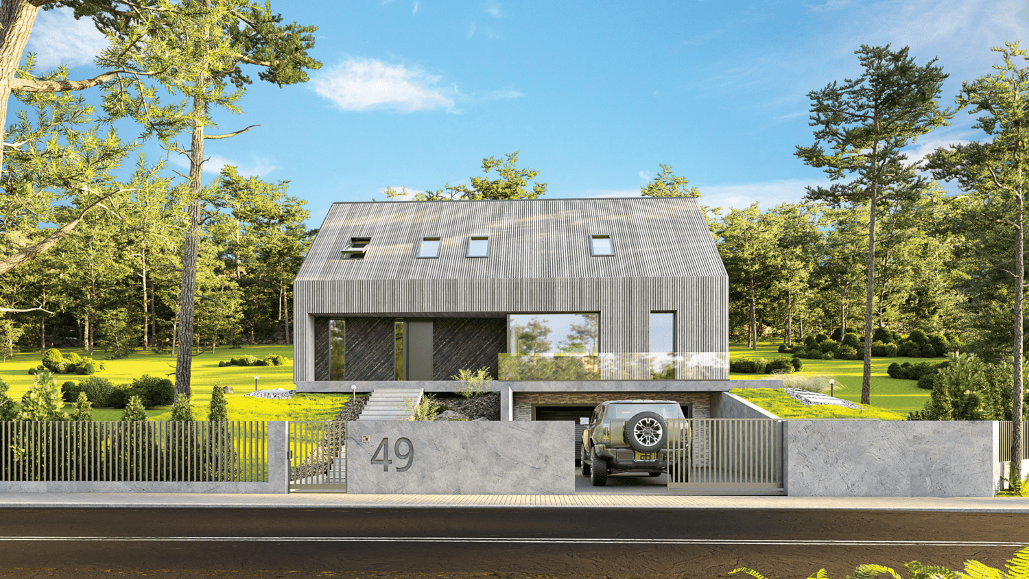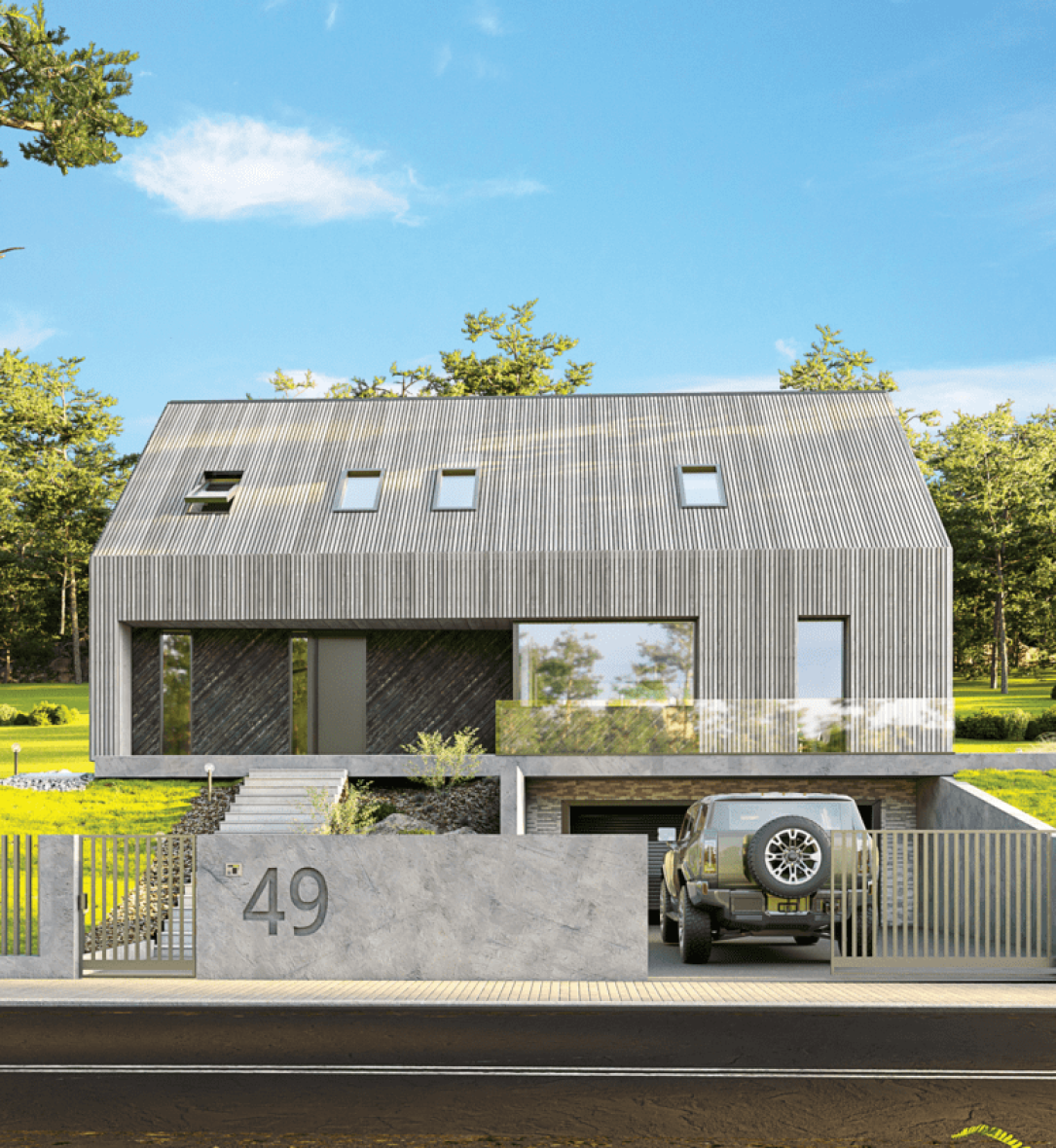 Prosta konstrukcja budynku w rzeczywistości opiera się na solidnych inżynierskich rozwiązaniach, które były niezbędne, by wpisać dom i garaż w bryłę naturalnie występującej na działce skarpy.