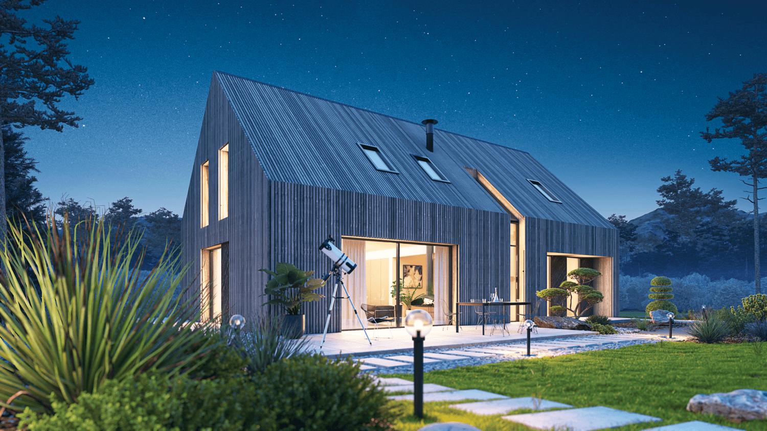 Całość ma dwie kondygnacje naziemne i piwnicę wraz z pomieszczeniami gospodarczymi. Zaplanowano typowy podział na strefę dzienną na parterze wraz z sypialniami na piętrze. Projekt pozostawia inwestorom dowolność, jeśli chodzi o wykończenie wnętrz – również dzięki uniwersalnej stylistyce obiektu. Wnętrze jest rozświetlone dzięki świetlikom i przeszkleniom zaplanowanym w elewac