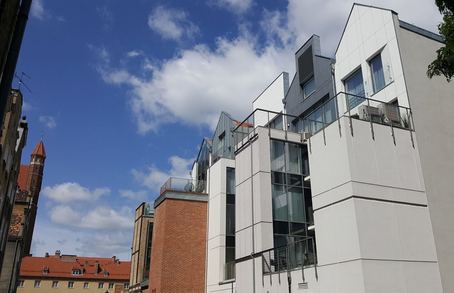Zabudowa została ukształtowana w oparciu o analizę historyczno – architektoniczną miejsca z zastosowaniem zgodnej z tradycją miejsca struktury, skali i proporcji architektonicznych brył oraz wedle zasad kompozycji, materiałów i detali elewacji w uzgodnieniu z Pomorskim Wojewódzkim Konserwatorem zabytków.