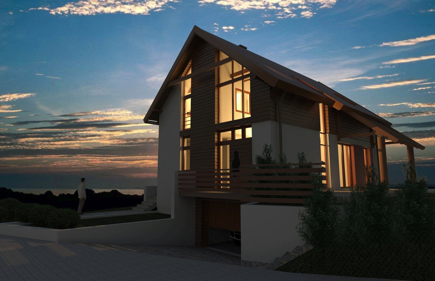 Zaprojektowaliśmy go dla rodziny czteroosobowej. Budynek jest wolno stojący, parterowy z użytkowym poddaszem oraz z wbudowanym garażem w piwnicy.