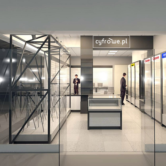 Projekty budowlane i wykonawcze sklepów stacjonarnych cyfrowe.pl na terenie całej Polski. Projektowaliśmy sklepy m.in. w Gdańsku, Warszawie, Poznaniu i Katowicach.